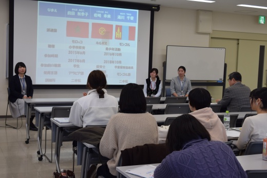 現在は、独立行政法人 国際協力機構 東北センター(JICA東北)のメンバーで、東松島市の地域復興推進員を務めています。この日は、モロッコとモンゴルに派遣されたJICA東北の仲間と共に3人でトークセッションにも臨みました。参加した約40人の学生らに、それぞれが貴重な体験を伝えました。