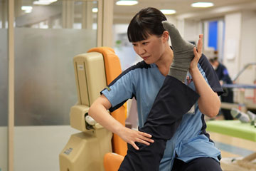 勤務して4年になりますが、今は急性期病棟で術後の患者さんのリハビリや泉中央にある整形外科クリニックの外来患者さんを担当しています。部活で怪我をしたお子さんから、腰を痛めた高齢者までいろいろな方々の機能回復の支援をしています。